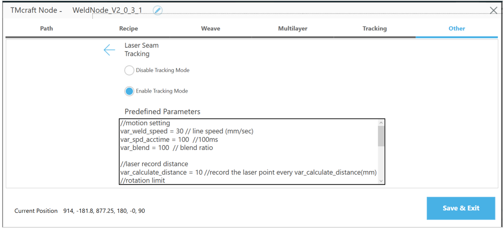 - All setting parameters are stored in that Welding Node. That is, if there are multiple Welding Nodes in one TMflow project, you need to configure them separately.