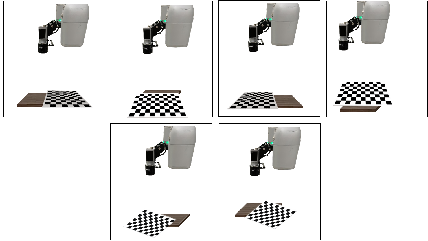 • Keep the calibration board stationary and positioned within the camera’s field of view. Place a book underneath it to create an inclination of approximately 5–10 degrees. Position the calibration board at six different locations below this setup.