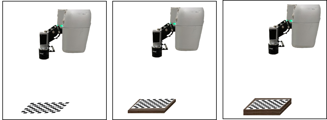 3. Select a lens, which has adjustable aperture size and focus, with an appropriate focal length. During the adjustment procedure, try to minimize the aperture size; a smaller aperture helps correct intrinsic parameters, resulting in a larger depth of field. This is particularly effective for capturing clear images of titled TM Calibration Plates. If there is insufficient brightness in the environment, try to adjust exposure time or external light sources. After tuning the aperture and focus, ensure that the screws of the camera are securely tightened to prevent any unexpected change in the intrinsic parameters during the calibration process or robot movement.